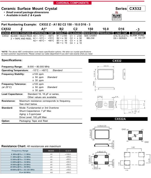 CX5無(wú)源晶體,Cardinal晶振,CX5Z-A2-B3-C460-12.0D16-3晶振