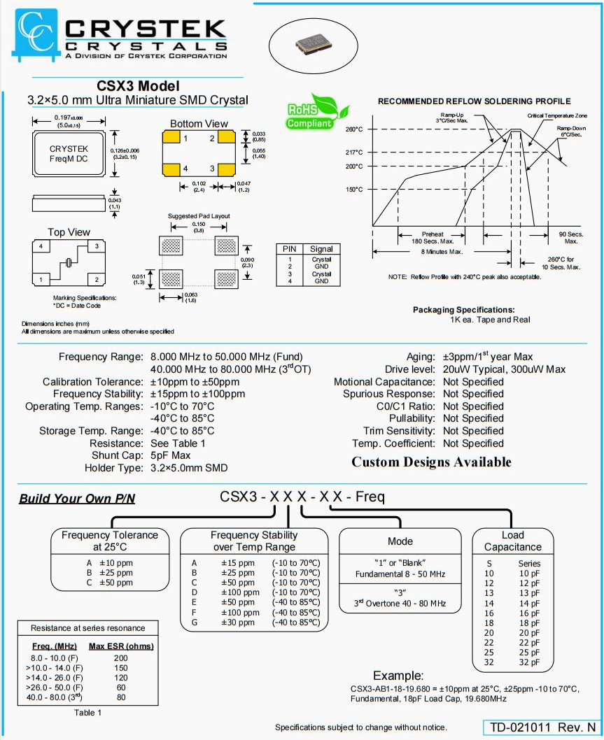 | C3390-18.432 | Crystek | C33 | XO | 18.432 MHz | 3.3V |