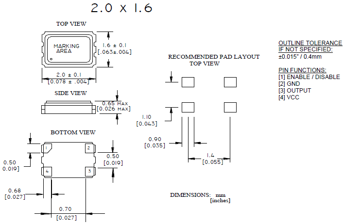 | Size/Dimension尺寸 | 2016石英晶振 | 最小包裝數MPQ: | 1000 |