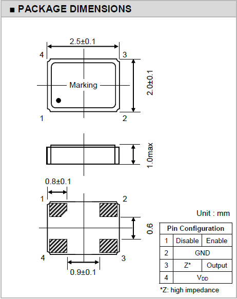 | Type 類型 | XO | Package Height高度 | 1.0mm |