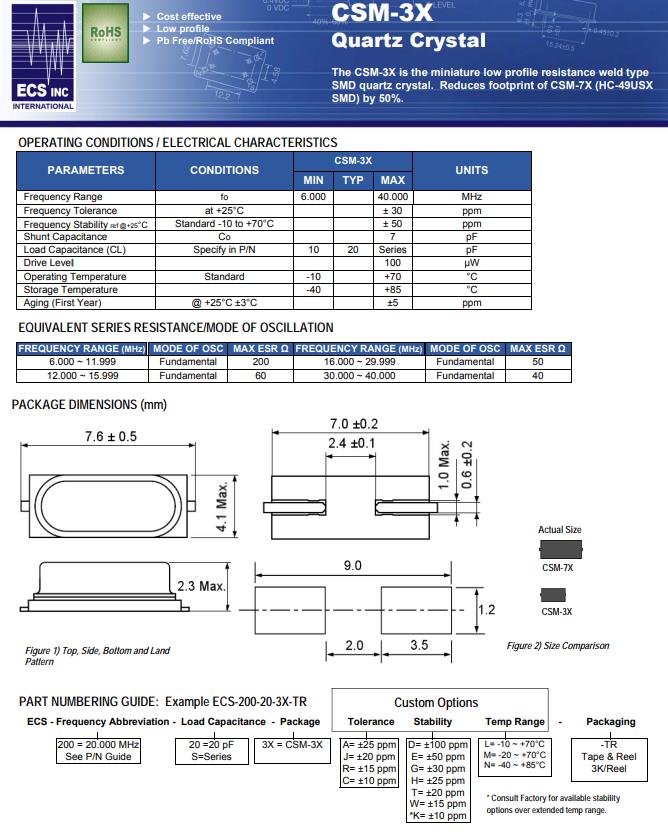 | ECS-160-20-3X-TR | CSM-3X | 16MHz | ±50ppm | ±30ppm | 20pF |