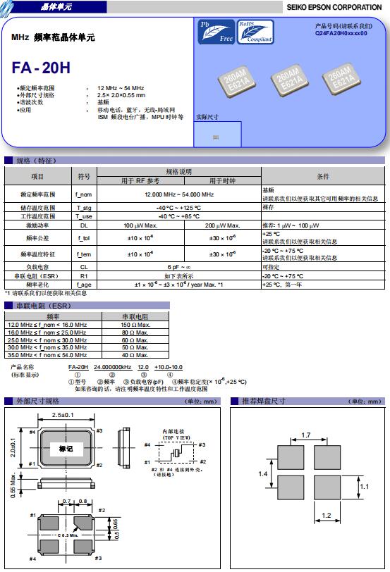 | Q24FA20H00152 | 2.5 x 2 x 0.55mm | FA-20H | 12.000000 MHz | 10 pF | -20 to +75 °C |