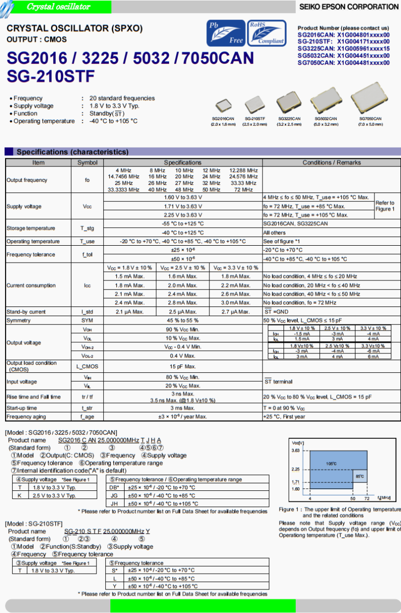| 儲存溫度 | T_stg | -55 °C to +125 °C | SG2016CAN, SG3225CAN | |||||||||||