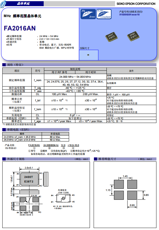 | X1E0003510030 | 2 x 1.6 x 0.5mm | FA2016AN | 54.000000 MHz | 6 pF | +/-10 ppm | +/-15 ppm |