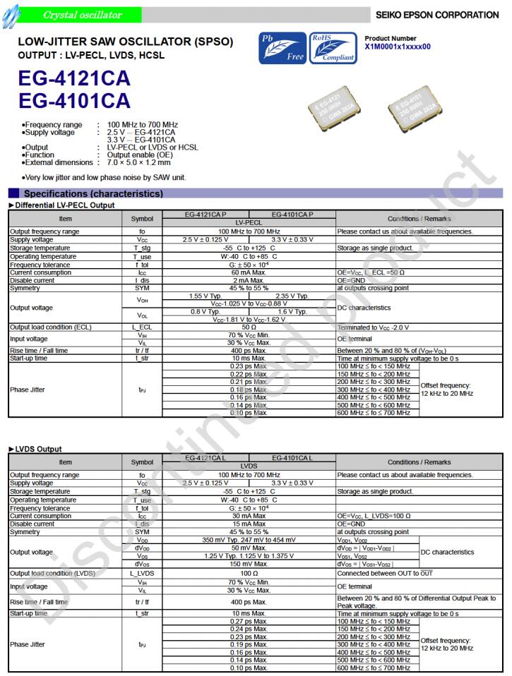| X1M0001410008 | EG-4101CA | 400.000000 MHz | 7.00 x 5.00 x 1.20 mm | LV-PECL | 2.970 to 3.630 V |