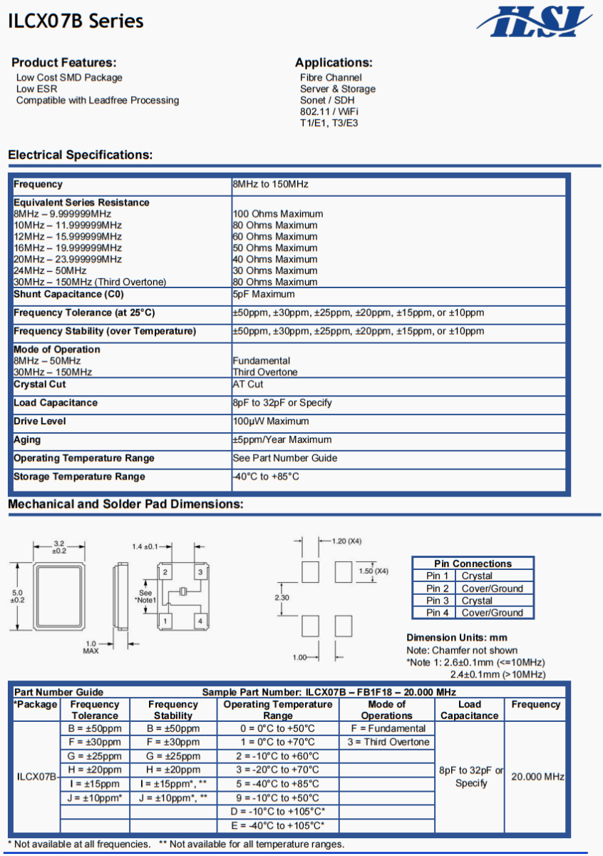 ILCX07B無源貼片晶體,ILSI高精度晶振,ILCX07B-FB5F20- 29.4912 MHz數碼相機晶振