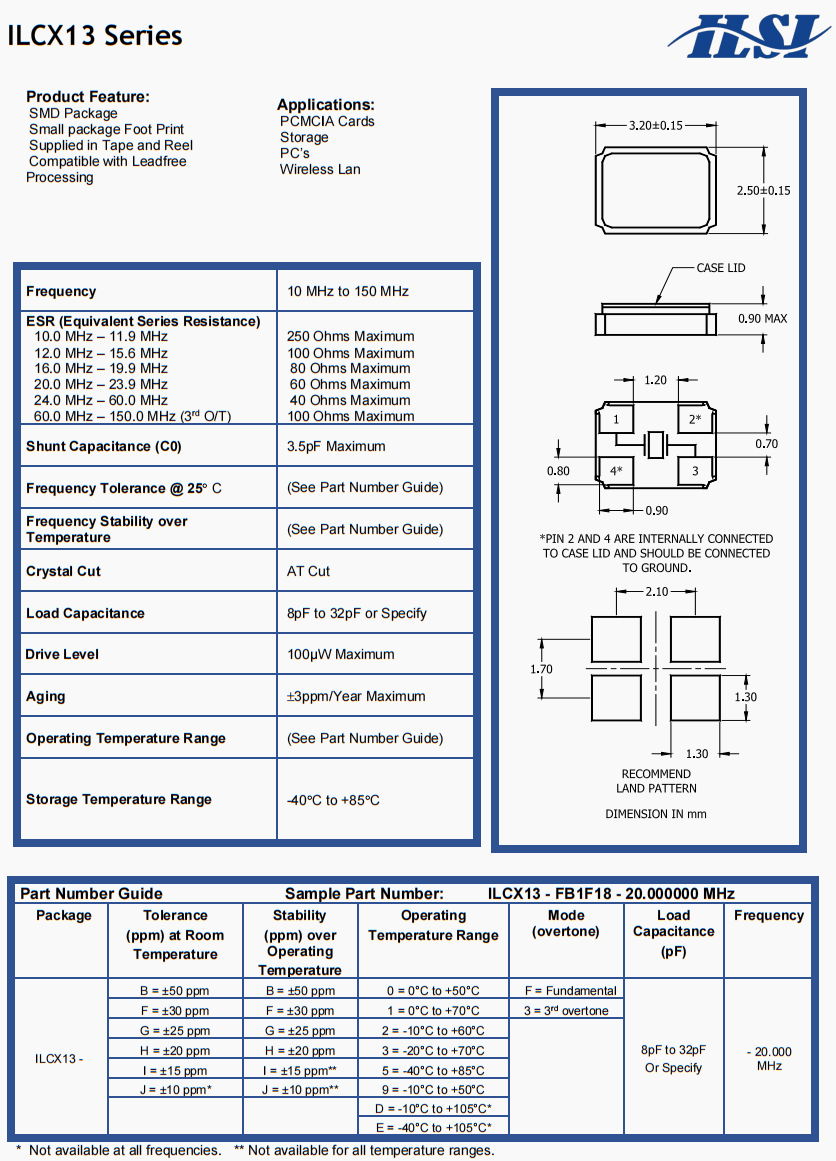 | 負載電容 | 18 pF Standard(see Part Number Guide for more options) |