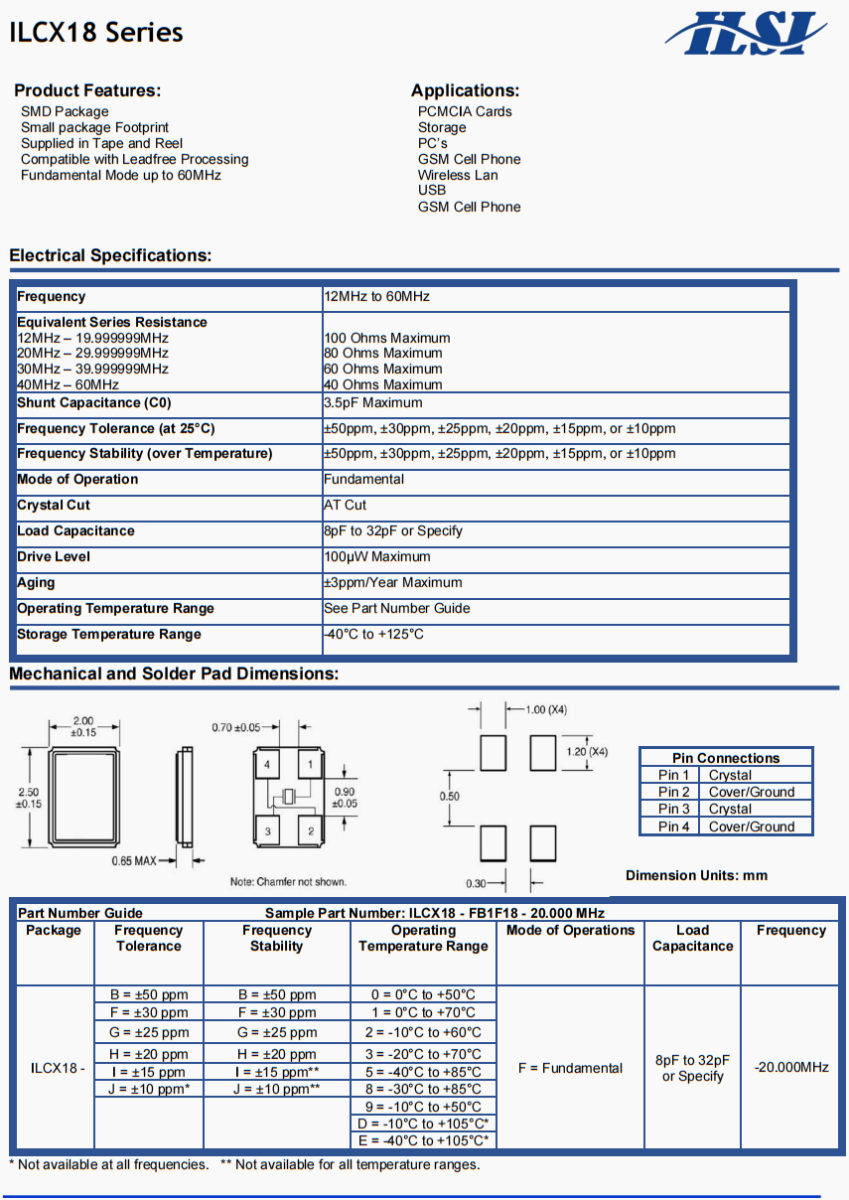 ILCX18四腳無源晶振,ILSI無人機遙控晶振,ILCX18-FF5F18- 16.000 MHz石英晶振