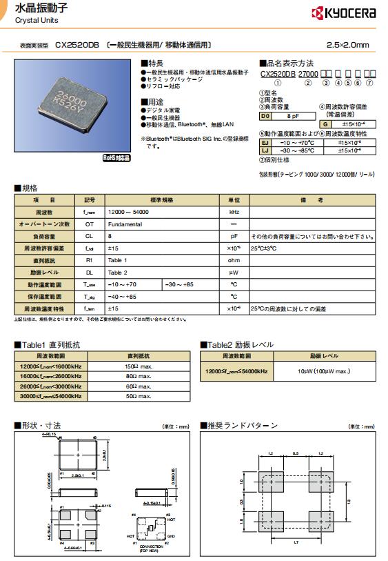 CX2520DB24000D0FLJCC-2520mm-Kyocera石英晶振-15ppm,參數圖