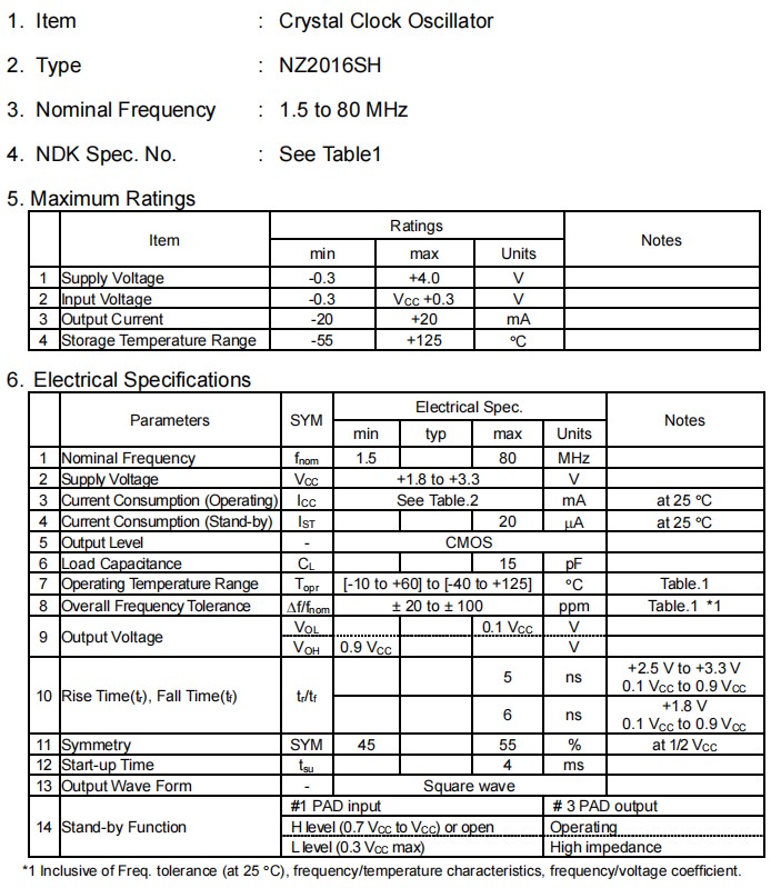 | NZ2520SB-5.000000MHZ | NDK晶振 | NZ2520SB | 5MHz | 3V |