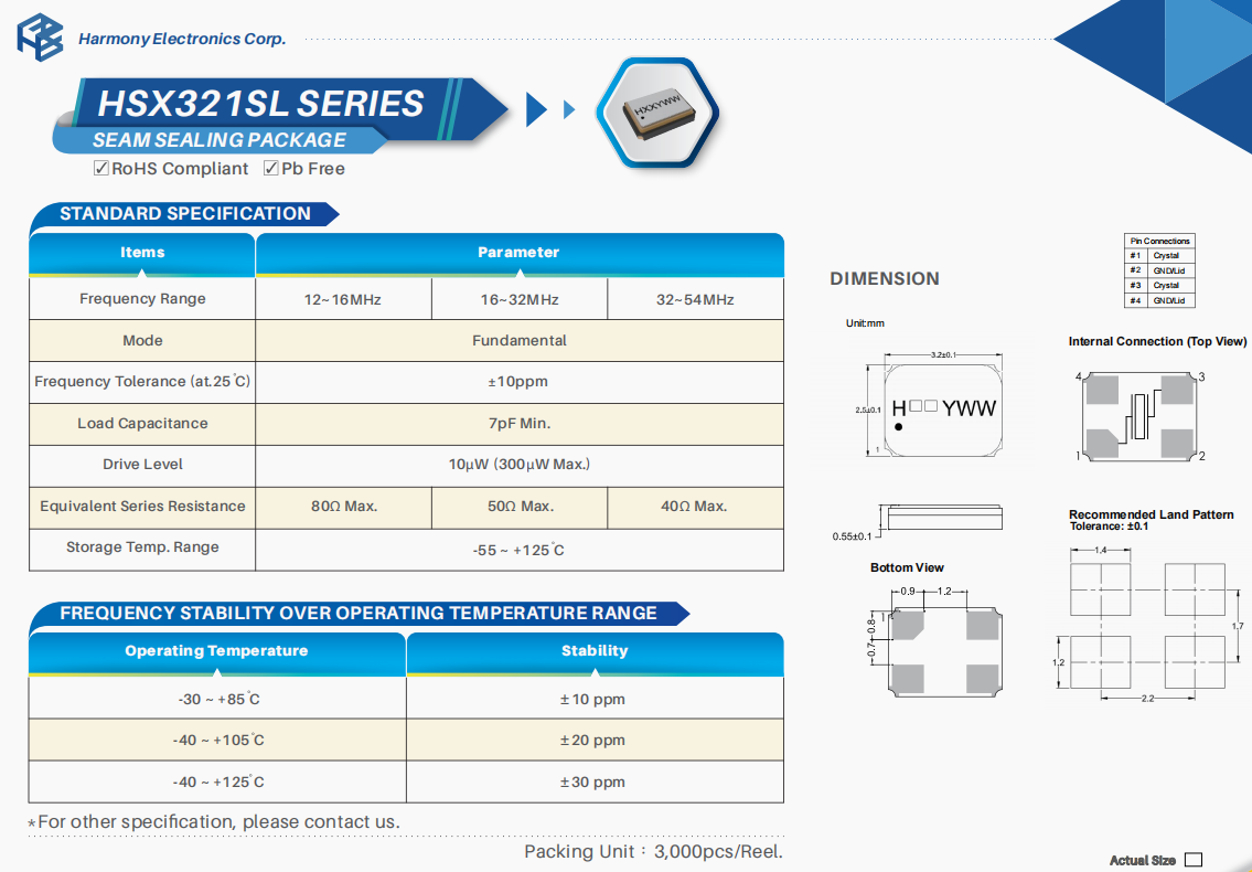 | X3S032000LK1H-Z | 加高晶振 | HSX321S | 32 MHz | ±12ppm | 20pF | -30°C ~ 85°C |
