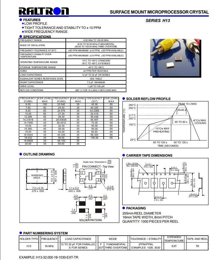 H13-13.000-16-5050-EXT-TR,Raltron無源晶振,7050mm,-40~85°C,參數圖