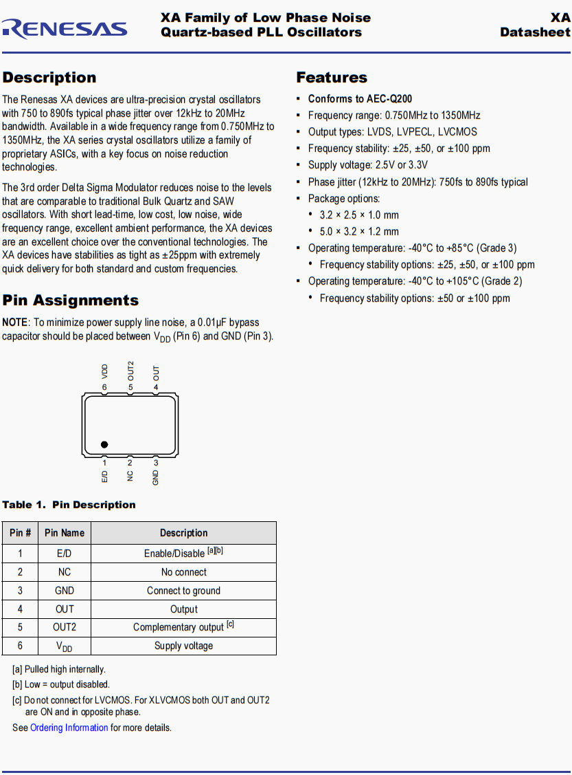 | XAH335125.000000I | Renesas晶振 | XA | 125 MHz | HCMOS | 3.3V | ±50ppm |