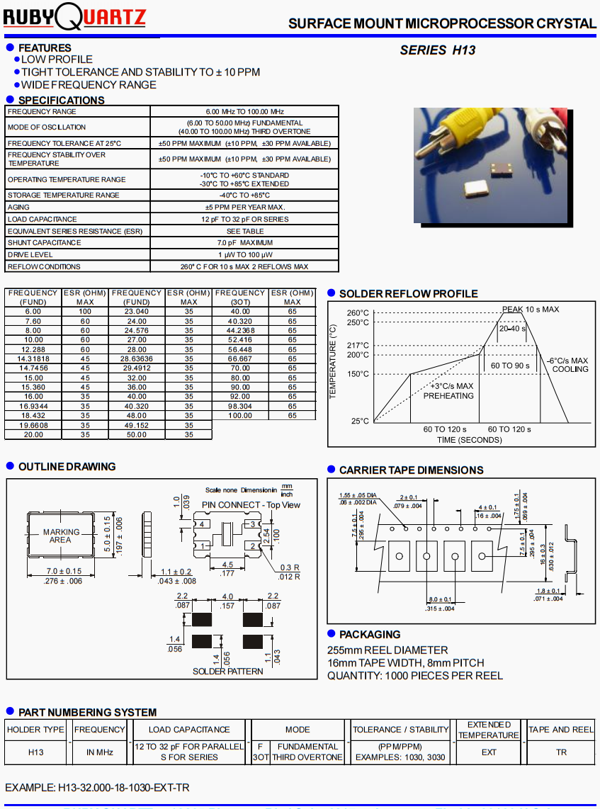 H13-32.000-18-1030-EXT-TR晶振,歐美rubyquartz晶體,耐高溫汽車晶振,美國盧柏晶振公司,高精度晶振,無源晶振,貼片晶振,高精度晶振,6G通訊設(shè)備晶振,無線傳輸晶振,局域網(wǎng)晶振,7050晶振,高品質(zhì)晶振,SMD晶振,石英晶振,小體積晶振,低損耗晶振 ,北斗衛(wèi)星定位模塊晶振,6G無線網(wǎng)晶振,高精度晶振。表面貼裝微處理器晶體,低輪廓,嚴(yán)格的公差和穩(wěn)定性到±10ppm,寬頻率范圍。