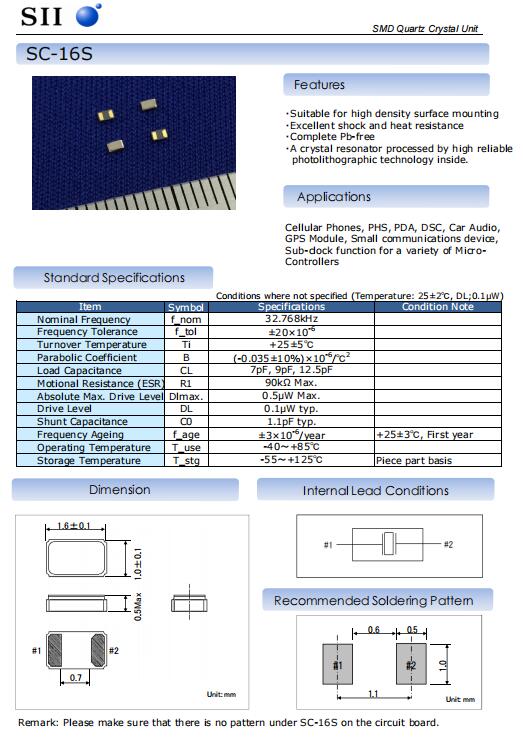 | Q-SC16S0320570CADF | 精工晶振 | SC-16S | 32.768kHz | ±5ppm | ±5ppm | 7pF |