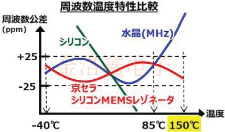 1.實現(xiàn)優(yōu)異的頻率溫度特性 隨著溫度升高,硅具有頻率溫度特性,其中直線向右下降,而石英具有三次曲線.京瓷的硅MEMS諧振器采用獨特的摻雜技術,使晶振可在-40~150℃的寬溫度范圍內實現(xiàn)+/-25ppm的窄公差.
