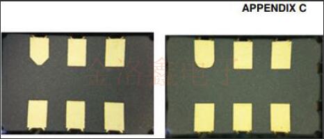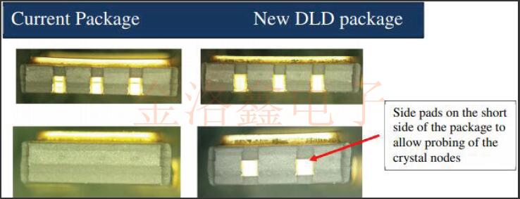 該PCN用于通知對VV-800石英晶體振蕩器系列5x3.2mm.2mm封裝的表貼型VCXO振蕩器中使用的軟件包的更改.通過在封裝中增加外部焊盤來修改封裝,以允許在密封振蕩器之后對晶體進行DLD和晶體阻抗(CI)測試.封裝將添加兩個外部電鍍焊盤,如下所示,以便進行此測試,從而通過篩選可能在DLD或高阻抗相關故障之后可能浮出水面的產品逸出來提高輸出質量.當前,在發貨前沒有對該部件執行DLD測試.振蕩器內部組件(例如IC或晶體)和組裝過程沒有任何變化,因此產品性能規格不會有任何變化.