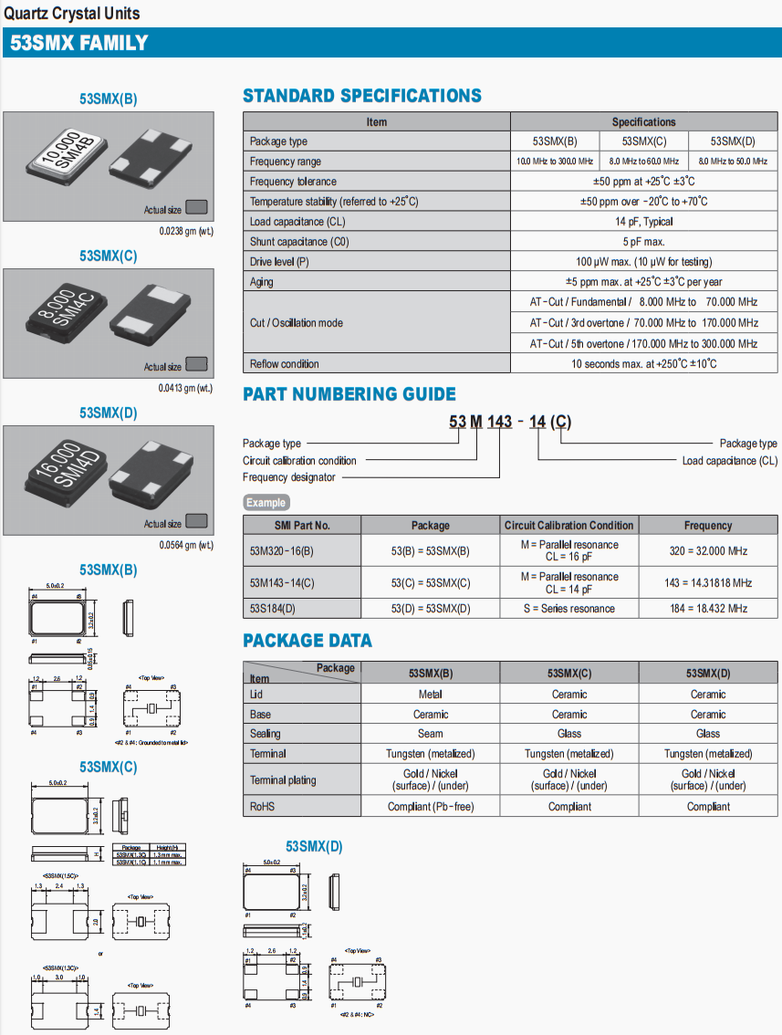53M300-14(B)晶振,SMI高品質(zhì)無源晶振,無人機型號傳輸晶振