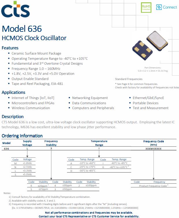 | 636L3C050M00000 | CTS-Frequency Controls | 636 | 50MHz | ±50ppm |
