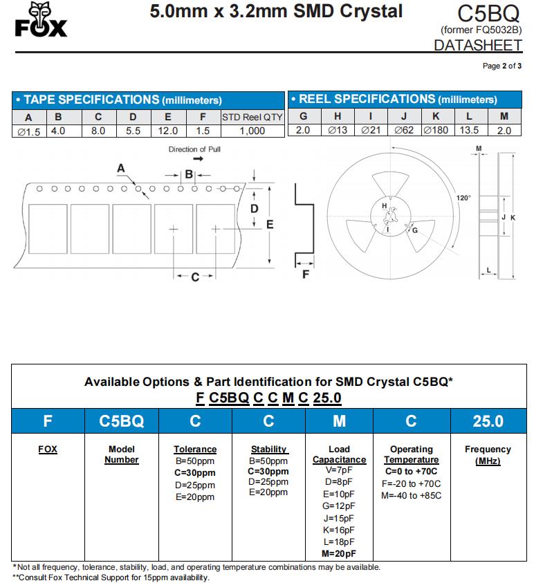 | FQ5032B-20.000 | FOX無源晶振 | C5BQ | MHz Crystal | 20MHz | ±30ppm |
