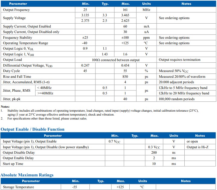 | Freq Range (MHz) | 25 to 162 (1.8V/2.5V/3.3V) |
