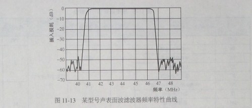 如圖11-13所示是某型號聲表面波濾波器頻率特性曲線。
