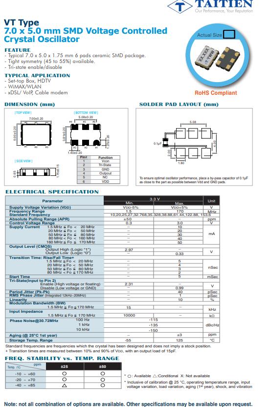 | VTEUBLJANF-31.250000 | Taitien | VT | VCXO | 31.25MHz | 3.3V |