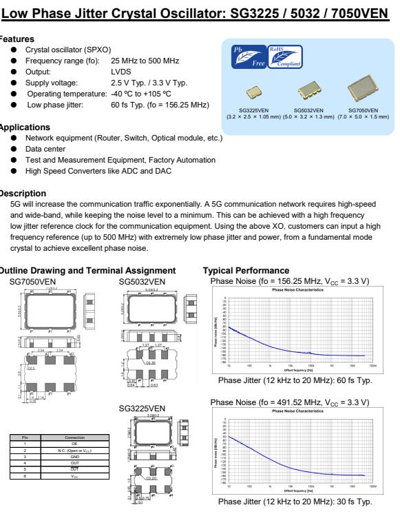| X1G005331000300 | SG7050VEN | 156.250000 MHz | 7.00 x 5.00 x 1.70 mm | LVDS差分晶振 | 3.135 to 3.465 V | -40 to 85 °C | +/-25 ppm |