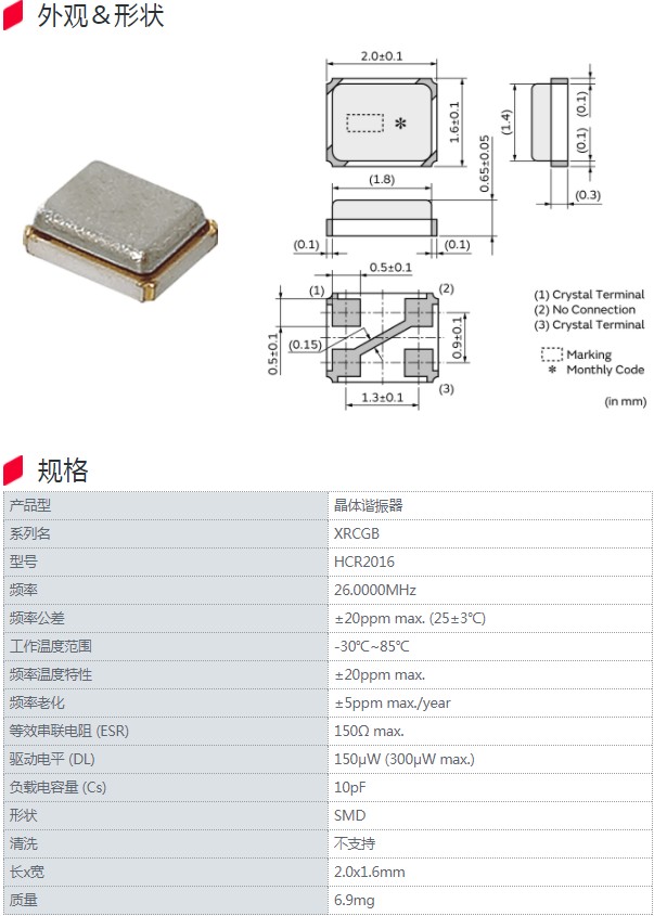 | XRCGB32M000F1H02R0 | HCR2016 | 32.0000MHz | ±10ppm max. (25±3℃) | 消費級 |
