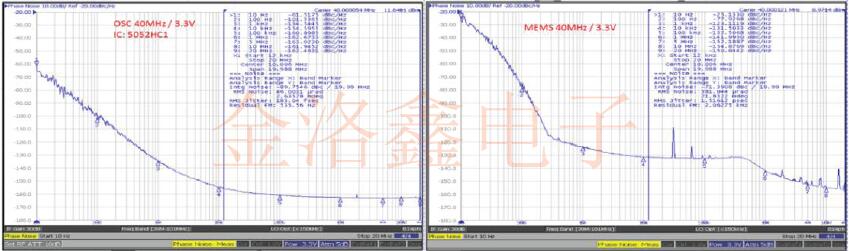 實驗室測量還表明,SMD有源晶振的相位噪聲要比MEMS振蕩器好得多.MEMS振蕩器具有較高的相位噪聲以實現低失調,因為與石英相比,硅諧振器的”Q”或品質因數較差.在10Hz時,石英振蕩器的相位噪聲比MEMS振蕩器好36dB.低失調的相位噪聲對于無線通信至關重要,并可能導致光通信中的某些錯誤.MEMS振蕩器在高失調(12kHz至20MHz)時也具有較高的相位噪聲,因為它們在PLL電路中使用了低QLC振蕩器.