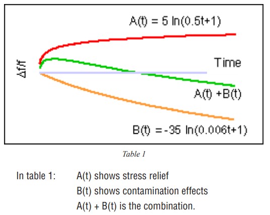 在現(xiàn)實世界中,這兩種機制都存在的。通過觀察上面的曲線,指出這些曲線的對數(shù)性質是很重要的。晶體在其生命早期的老化速度很快,但往往會隨著時間的推移而穩(wěn)定下來。