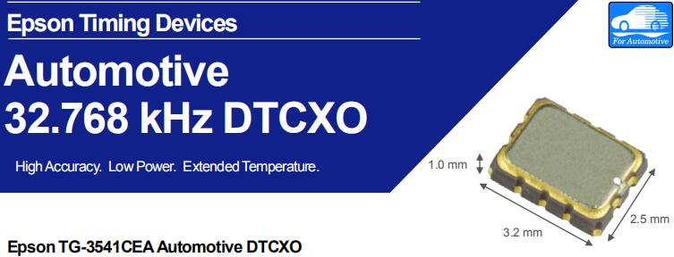DTCXO技術僅適用于集成晶體.集成晶體可以對振蕩器/晶體組合進行制造校準,并消除了由于負載和電路板雜散電容引起的頻率變化.愛普生的溫補晶振技術可產生高度精確的32.768kHz振蕩器,在-40~+85℃時達到<±3.4ppm,在+85~+105℃時達到<±8.0ppm.這樣可確保每月分別優于±9秒或每月±21秒的精度,這對于要求在惡劣環境下保持精確計時的汽車應用~關重要.