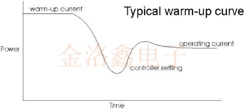 烤箱振蕩器消耗的功率主要取決于絕緣材料的質量,內部烤箱的大小和環境溫度.在預熱過程中以及在室溫下穩定之后,通常會指定烤箱振蕩器的功耗.可以根據振蕩器的熱導率來預測穩態功率需求.如果振蕩器的導熱系數為每度10mw,則環境溫度下降5度時,功耗將增加50mw.烤箱將"失控"的溫度可以從室溫功耗中推算出來,因為烤箱控制器不能將電流降低到低于操作電路所需的電流量.