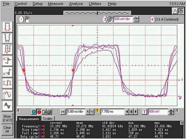 當(dāng)同一頻率的多個(gè)輸出在同一時(shí)間點(diǎn)切換時(shí),最終結(jié)果是時(shí)鐘頻率諧波處的較大EMI雜散,以及開(kāi)關(guān)電流總量導(dǎo)致的電源噪聲增加.通過(guò)對(duì)每個(gè)時(shí)鐘輸出偏斜進(jìn)行編程,使其相對(duì)于其它輸出延遲,雜散能量得以分散,從而降低峰值EMI和電源開(kāi)關(guān)噪聲.今天的大多數(shù)嵌入式系統(tǒng)實(shí)現(xiàn)了差分時(shí)鐘方法以獲得更高的帶寬,許多電路板設(shè)計(jì)人員忽略了這些信號(hào)格式對(duì)EMI和系統(tǒng)性能的影響.邊沿壓擺率的不匹配以及真實(shí)信號(hào)和互補(bǔ)信號(hào)之間的偏斜將產(chǎn)生輻射EMI的共模能量,以及導(dǎo)致數(shù)據(jù)丟失的不穩(wěn)定交叉點(diǎn).由于這些系統(tǒng)中的時(shí)鐘樹(shù)通常以差分輸出驅(qū)動(dòng)多條總線,因此任何差分時(shí)鐘失調(diào)都會(huì)產(chǎn)生大量共模能量.利用I2C可編程或工廠可配置的偏斜和邊沿速率特性,每個(gè)I/O都可以針對(duì)PCB環(huán)境進(jìn)行單獨(dú)調(diào)諧,以實(shí)現(xiàn)交叉點(diǎn)優(yōu)化和EMI降低.skyworks思佳訊晶振可編程阻抗還允許電路板設(shè)計(jì)人員以最佳方式匹配負(fù)載阻抗,而無(wú)需修改分立式端接網(wǎng)絡(luò)或PCB走線設(shè)計(jì).不匹配的走線阻抗會(huì)引起反射,從而產(chǎn)生時(shí)鐘過(guò)沖和下沖,導(dǎo)致接收設(shè)備時(shí)鐘電路中的EMI和毛刺增加.大規(guī)模定制的時(shí)代到了頻率定制已經(jīng)成為必然,但如何解決開(kāi)發(fā)人員在設(shè)計(jì)系統(tǒng)和達(dá)到里程碑時(shí)關(guān)心的其他參數(shù),如信號(hào)優(yōu)化或最終產(chǎn)品符合聯(lián)邦監(jiān)管要求?仍然很難說(shuō)服系統(tǒng)設(shè)計(jì)人員,時(shí)序中存在"大規(guī)模"定制這種東西,無(wú)論應(yīng)用如何,都可以實(shí)現(xiàn)最佳的時(shí)序解決方案,而無(wú)需幾個(gè)月的交付時(shí)間或大量非經(jīng)常性工程(NRE)費(fèi)用.