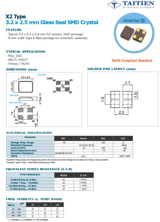 Taitien晶振規格 |