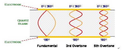 在AT切割角度的石英晶體共振子主要是以厚度剪切振蕩模態(tài)存在.石英晶振在共振時, 除了基本波振蕩之外, 高階的倍頻共振也與基本波振蕩同時存在于石英晶體的電極區(qū)域之間. 但是, 由于壓電材料的電極是電氣相位相反的振動環(huán)境, 所以, 祇有奇數(shù)倍(odd number)的高頻倍頻可以發(fā)生,偶數(shù)倍(even number)的倍頻共振在石英晶體共振子是不會存在的.品工作條件.jpg)